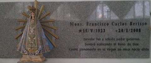 “Mons. Francisco Carlos Berisso *15-05-1923 +20-01-2008 Servidor fiel y solícito, padre generoso. Sembró edificando el Reino de Dios.